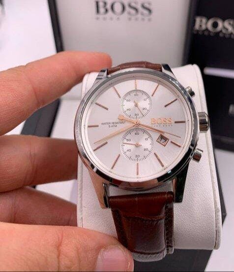 Bracelet & Diamètre : bracelet en Cuir marron , Boîtier en Acier inoxydable de 41mm .